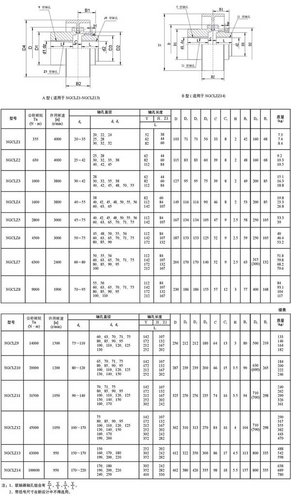 NGCLZ型帶制動輪鼓形齒式聯(lián)軸器 基本參數(shù)和主要尺寸