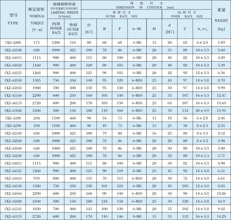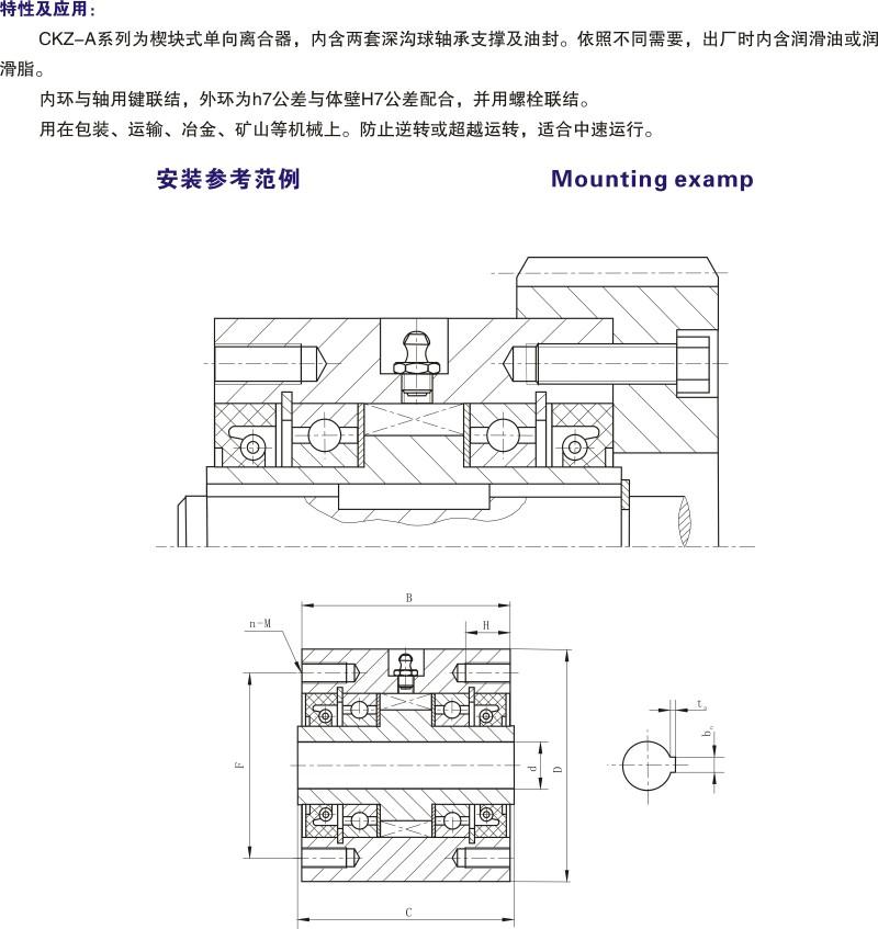 CKZ-A系列為楔塊式單向離合器,內(nèi)含兩套深溝球軸承支撐及油封。依照不同需要,出廠時(shí)內(nèi)含潤(rùn)滑油或潤(rùn)滑脂。