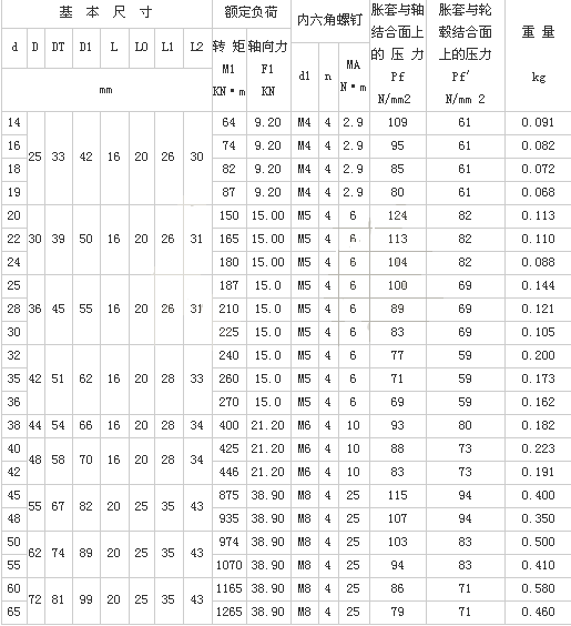 Z14型脹緊聯(lián)接套適用于軸和軸套之間的無鍵聯(lián)結(jié)裝置可從外部對(duì)軸套施加夾緊力,使軸與軸套之間形成機(jī)械壓縮配合,而傳遞扭矩,脹套本身不傳遞任何力矩及負(fù)載,容易安裝、拆卸.